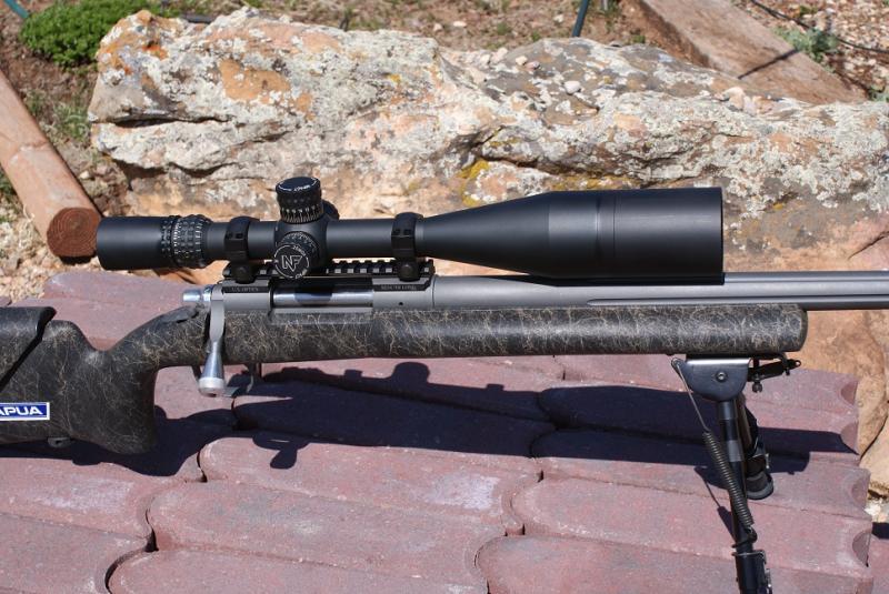 .338 Lapua, Built on a Remington 700 Action. Mated to a solid one piece bolt from Pacific Tool and Grinding with an M-16 Extractor. Barrel is a Shilen Match Grade with a Holland Muzzel Brake. Adjustable Stock by H-S Precision.